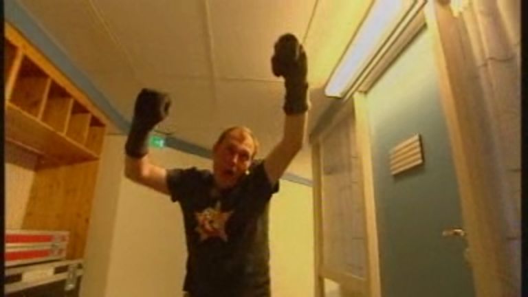 » 22:33 1 Terwijl Rocky door de speakers klinkt komt Maikel aangerend, met nog steeds blote voeten en z'n sokken om z'n handen.